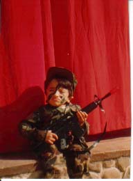 Jorge disfrazado de soldado, antes de un acto en el colegio.