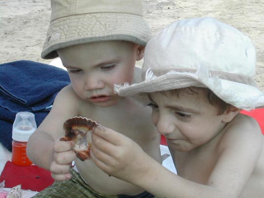 Rodri y su Hermano Juan Pablo, analizando una concha.