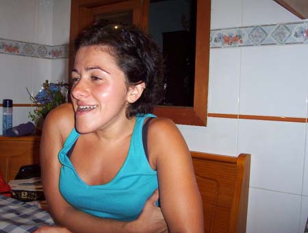 Sandra es una chica de Valencia, España, con OI. Aquí la vemos en casa de un amigo.